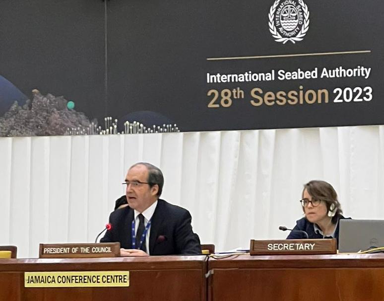 En el inicio del 28 periodo de sesiones de la AIFM, celebrado en su sede en Kingston, Jamaica, al asumir la presidencia del Consejo, el representante permanente de México, Juan José González Mijares, reiteró su compromiso de propiciar el trabajo en la construcción de un marco jurídico sólido y operativo, que dé certeza a las actividades en la Zona, al mismo tiempo que garantice la obligación de una efectiva protección y preservación del medio marino, junto con un aprovechamiento sustentable de los recursos para beneficio de la humanidad en su conjunto.