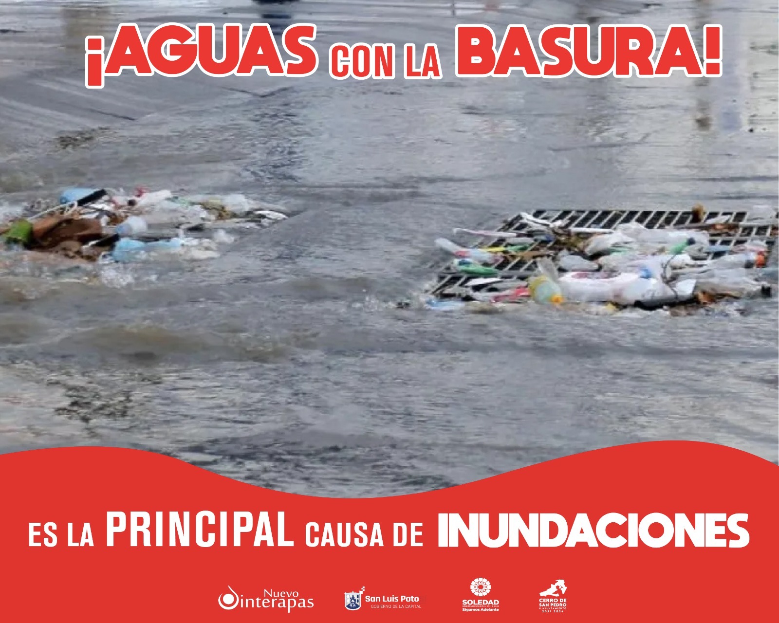 INTERAPAS EXHORTA A NO TIRAR BASURA EN LA VÍA PÚBLICA PARA EVITAR INUNDACIONES