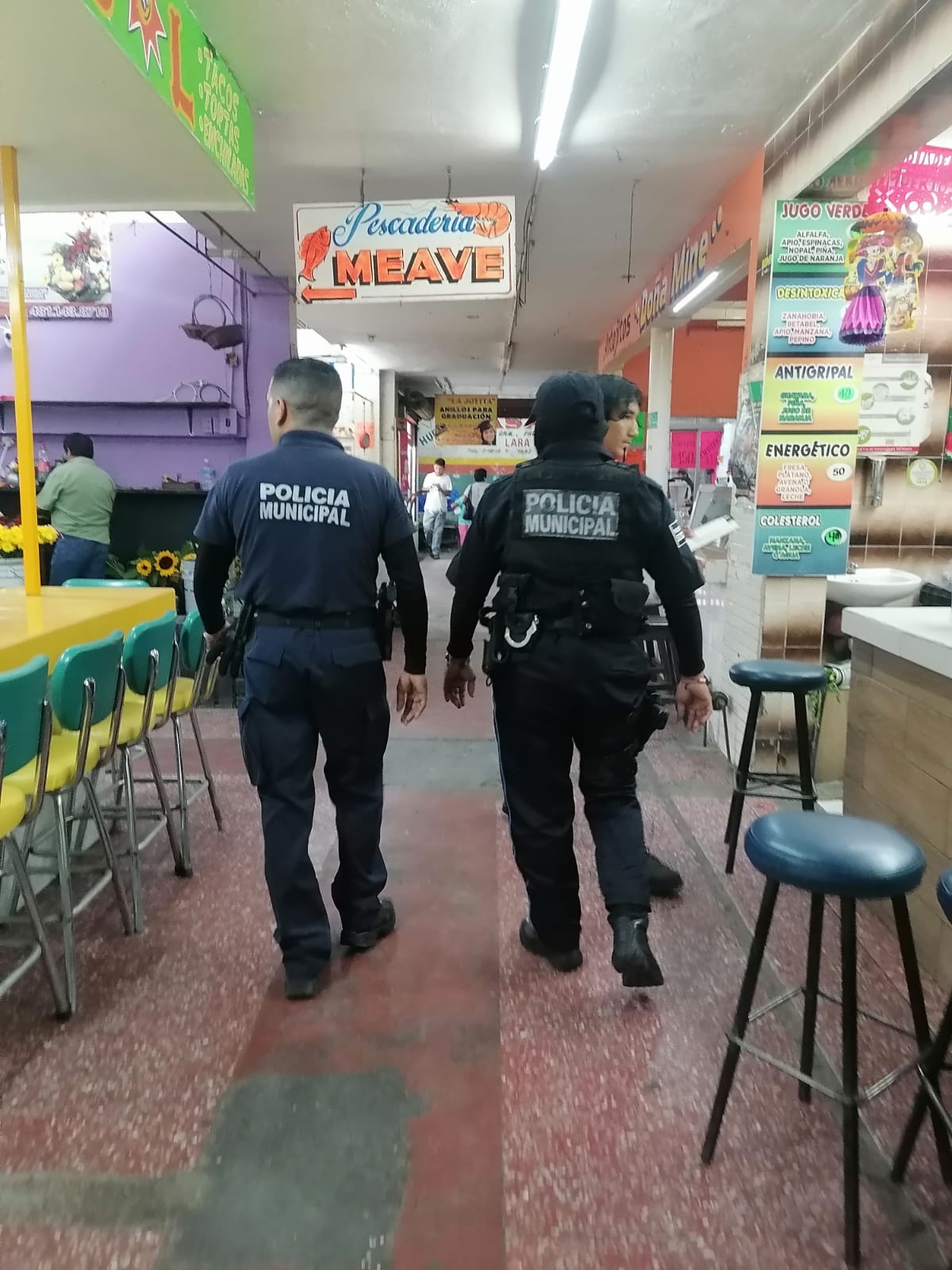 La Dirección General de Seguridad Pública y Tránsito Municipal continua sus recorridos de vigilancia en la zona centro, enfocando la seguridad en el área de los mercados.Con elementos pie tierra, la corporación brindó la seguridad a los habitantes que buscan hacer sus compras o a los comerciantes, en los mercados Gonzalo N. Santos, Constitución y Valles 85.Algunas acciones realizadas durante el recorrido fue la inspección a un peatón en el mercado Gonzalo N. Santos y se le brindó atención a una persona en situación de calle.