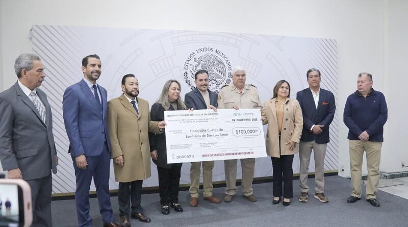 La LXIV Legislatura del Congreso del Estado hizo entrega de un apoyo económico al H. Cuerpo de Bomberos de San Luis Potosí, por la cantidad de cien mil pesos.